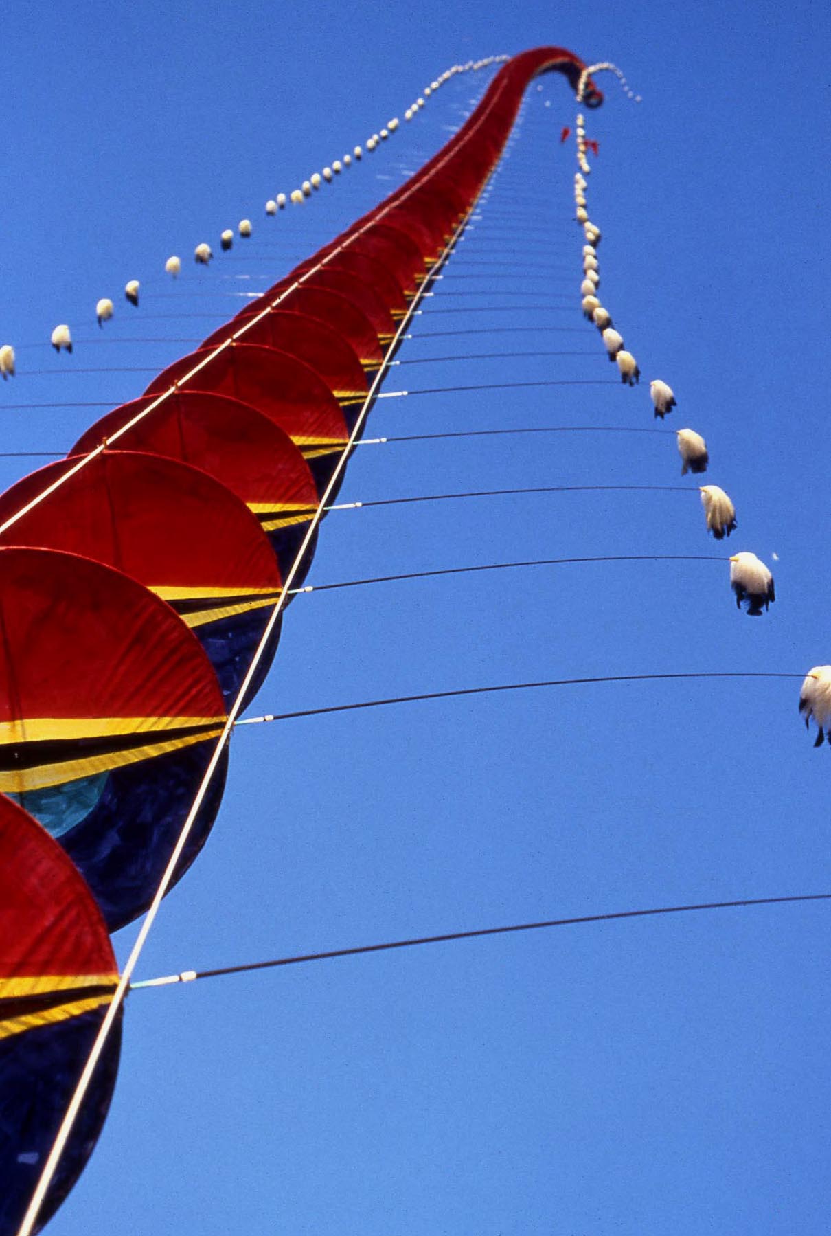 Van Sant is reknowned for his design of large-scale kites. His flying sculptures have been flown and exhibited at a dozen museums in the United States and Europe. He was the first to use the modern materials of fiberglass tube and nylon fabric in kite construction. As such, he is recognized in the kite world as the Father of Modern Kite Making.