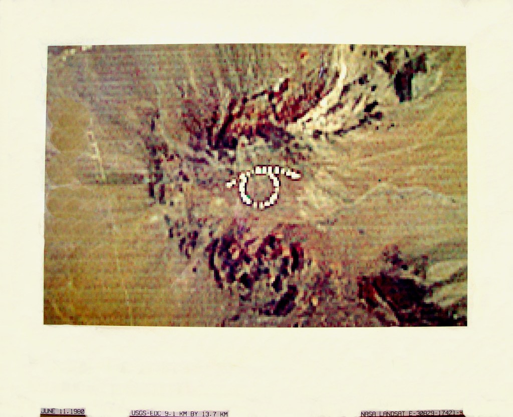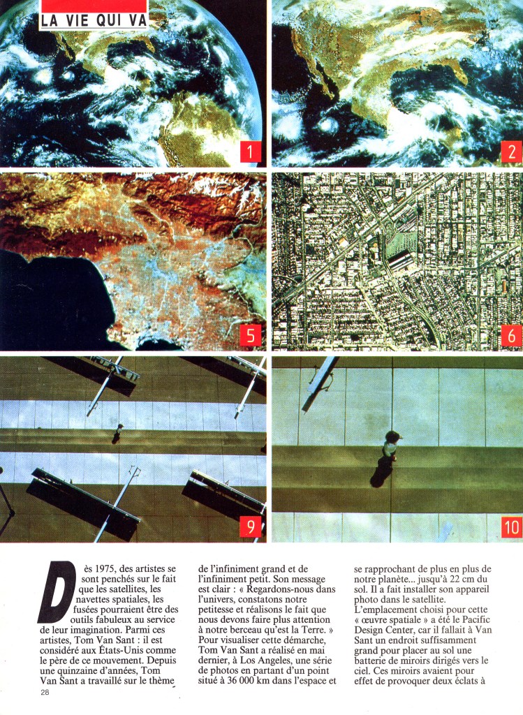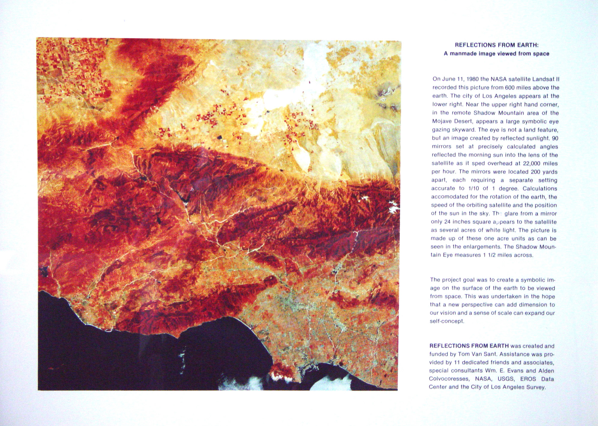 “REFLECTIONS FROM EARTH”: the world’s largest man-made image, created by Tom Van Sant, commissioned by The Los Angeles Bicentennial Commission, carried out in cooperation with NASA, US Geological Survey, City of Los Angeles Survey and Earth Resources Satellite Data Processing Center, 1980. Special assistance from Dr. William E. Evans, staff scientist, Stanford Research Institute.